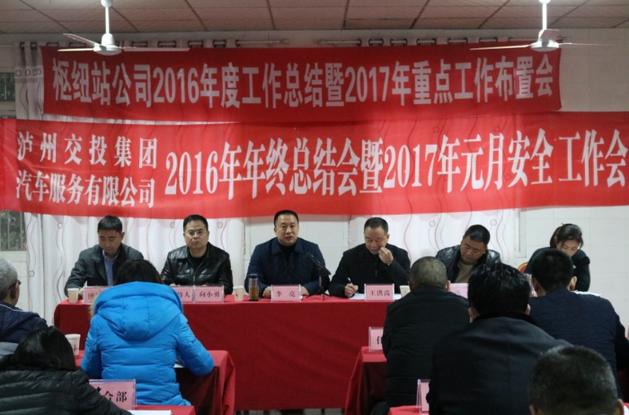 猴年接近尾声,泸州交投集团汽车服务有限公司召开的2016年度总结暨表彰大会,集团公司董事长李亮、总经理王洪禹、副总经理宋民莅临会议指导。